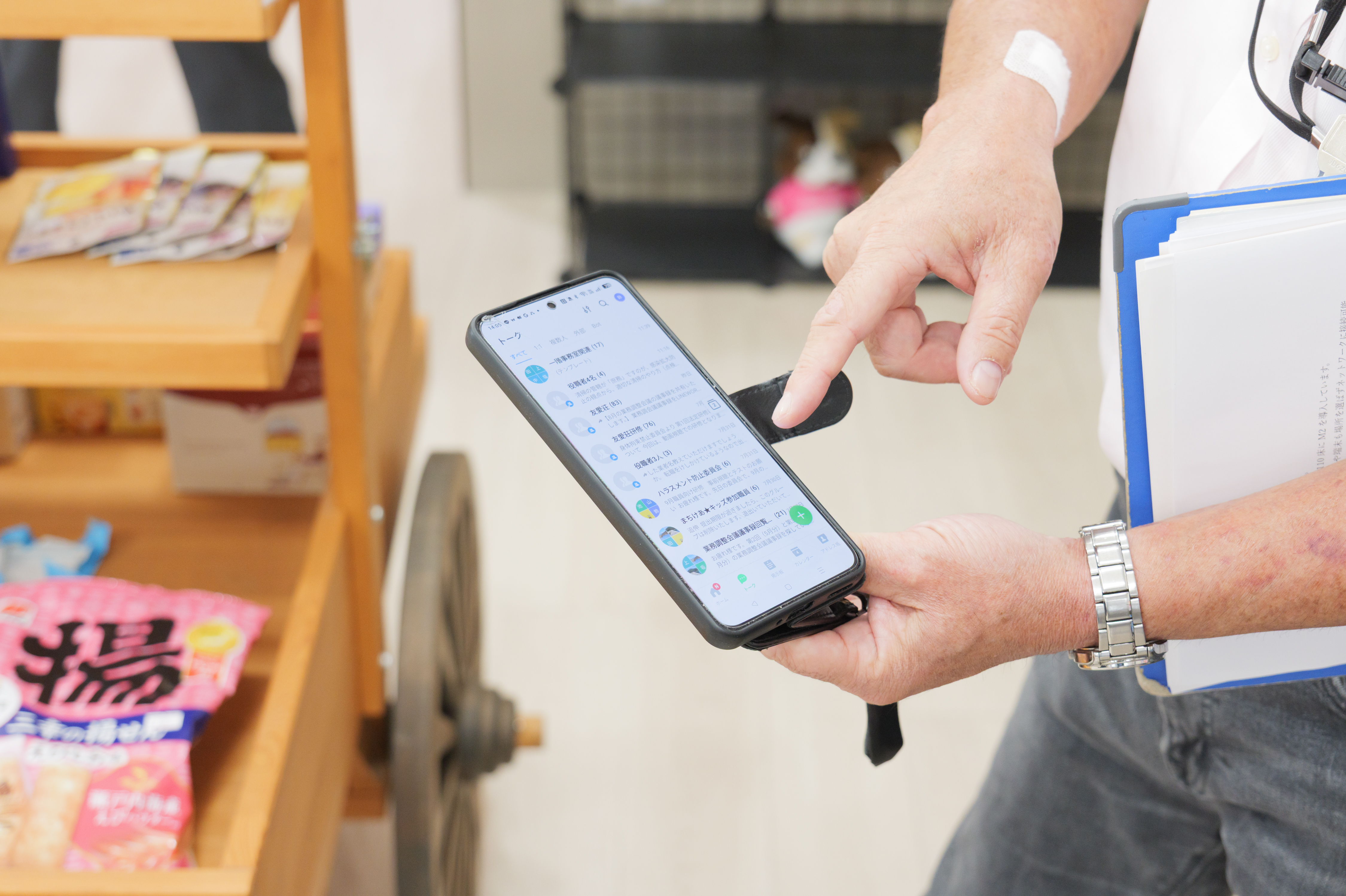 1日のかなりの時間を占める職員間の情報共有は、全員加入のアプリLINE WORKSを活用。LINEに似た操作感で、チャット、音声・ビデオ通話、掲示板、カレンダー、タスク管理、アドレス帳、ファイル管理などの機能がある。伝達事項の共有はもちろんのこと、職員間のスケジュール調整、会議の議事録もアップすれはみんなで見られるので非常に重宝しているという。